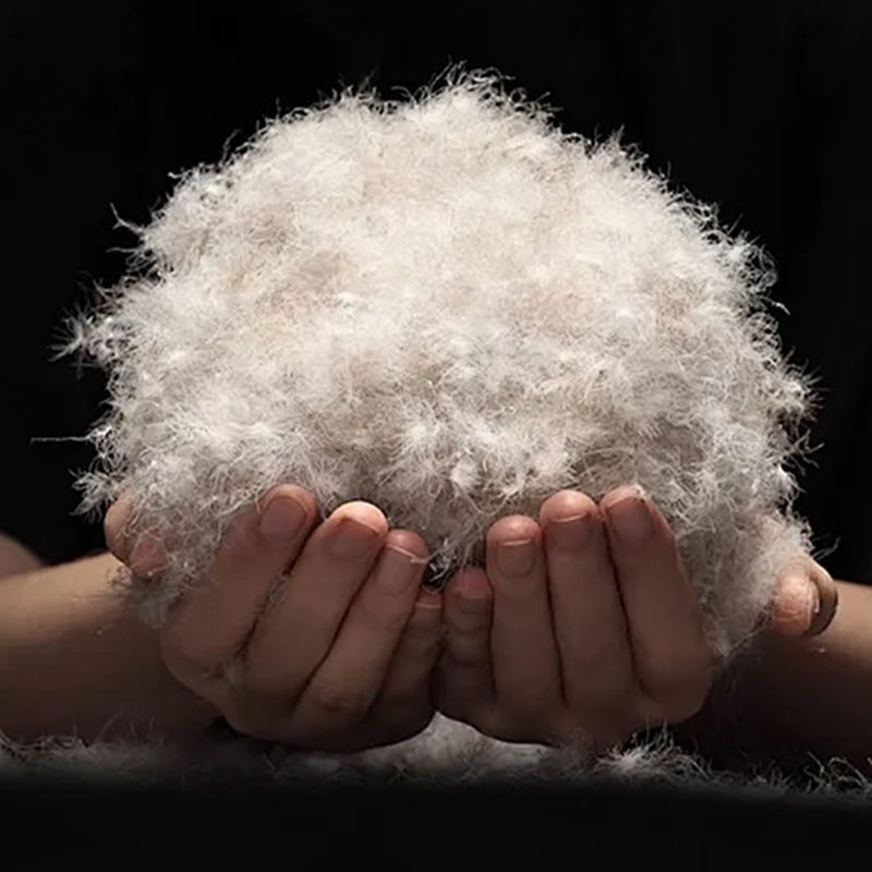 نواحی تولید کننده هسته شکم و گردن اردکهای خاکستری با دقت انتخاب شدهاند و از یک فرآیند نسبت علمی برای ترکیب 50% الیاف اردک خاکستری با کیفیت بالا و 50% الیاف پر با کیفیت بالا برای تشکیل یک ساختار کامپوزیتی گرم طبیعی استفاده میشود. پایین به شکل یک خوشه نی سه بعدی است، و سطح هر پایین به طور متراکم با یک شبکه منافذ مثلثی دقیق پوشیده شده است تا یک سیستم ریزسیرکولاسیون کنترل دما ایجاد شود - وقتی سرد است، فیبر به طور طبیعی پیچ میخورد تا یک لایه عایق هوا را تشکیل دهد، و وقتی گرم است، فیبر کشیده میشود تا رطوبت را تنظیم کند و دمای آن را تنظیم کند. ساختار فیبر توخالی منحصر به فرد می تواند گرمای ساطع شده از بدن انسان را به طور موثر جذب کند، در حالی که یک مانع عایق حرارتی طبیعی را تشکیل می دهد، به طور موثری از تهاجم جریان های سرد خارجی جلوگیری می کند و فقط نور مناسب و تجربه گرم را به ارمغان می آورد.